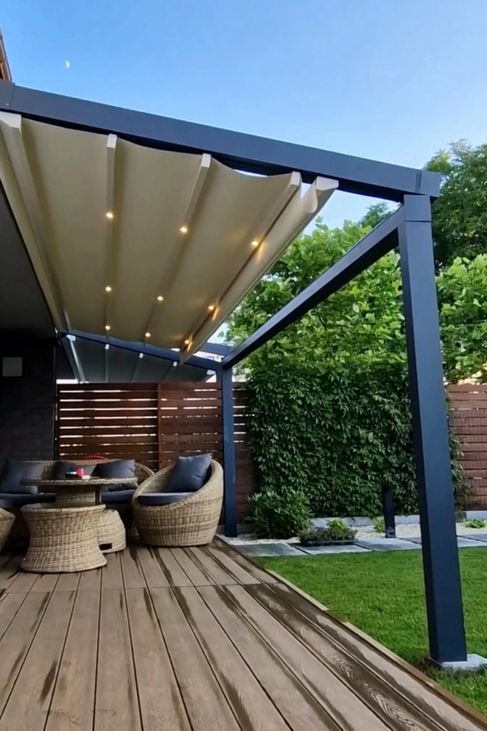 Des capteurs météo peuvent fermer automatiquement la pergola en cas de vent fort ou de pluie.